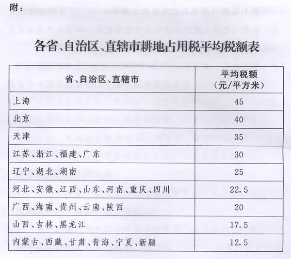 各地区耕地占用税的适用税额,由省、自治区、直辖市人民政府根据人均耕地面积和经济发展等情况,在前款规定的税额幅度内提出,报同级人民代表大会常务委员会决定,并报全国人民代表大会常务委员会和国务院备案。各省、自治区、直辖市耕地占用税适用税额的平均水平,不得低于本法所附《各省、自治区、直辖市耕地占用税平均税额表》规定的平均税额。