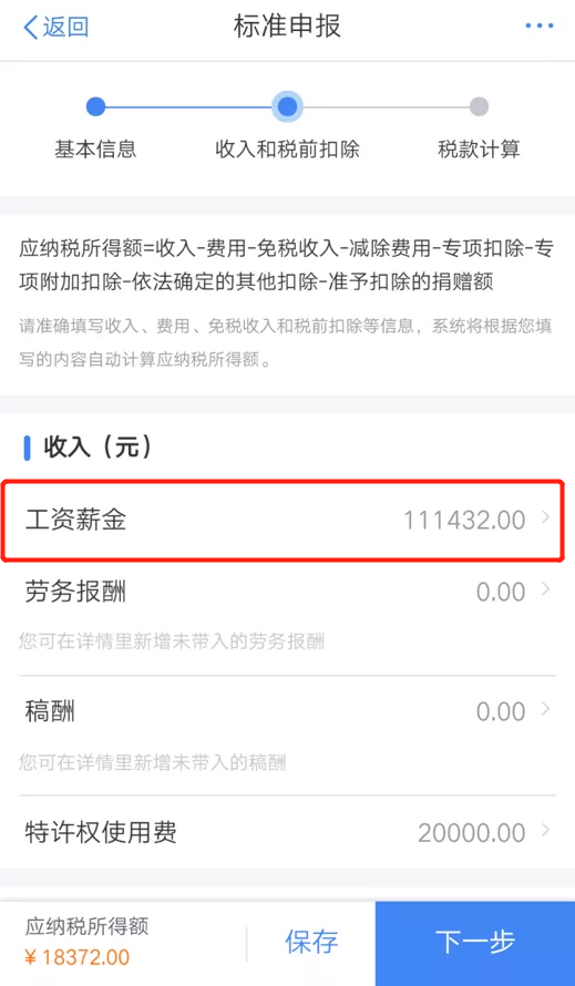 ①在“收入和税前扣除”界面,点击【工资薪金】→【下一步】。
